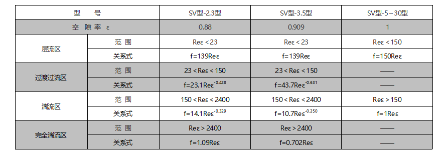 SV型的雷諾數(shù)Reε和磨擦系數(shù)f的關(guān)系
